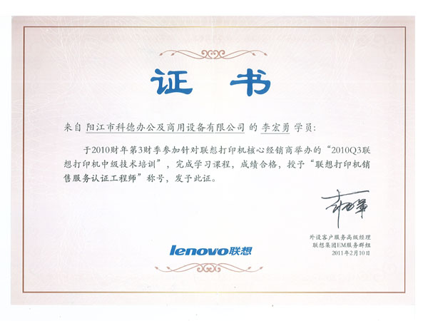 陽江科德 / 聯(lián)想創(chuàng)新通用業(yè)務(wù)經(jīng)銷商