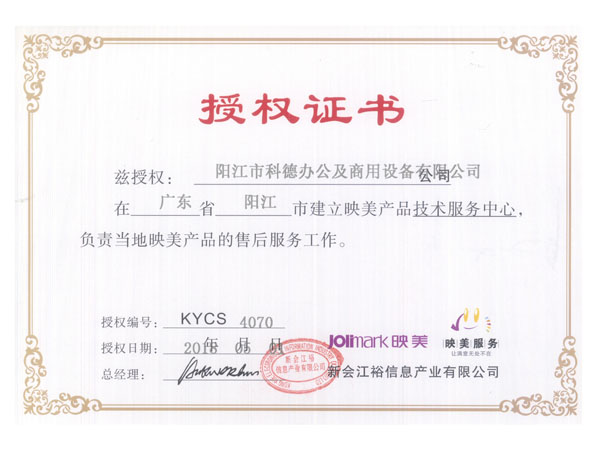 陽江科德 / 映美產(chǎn)品服務(wù)授權(quán)