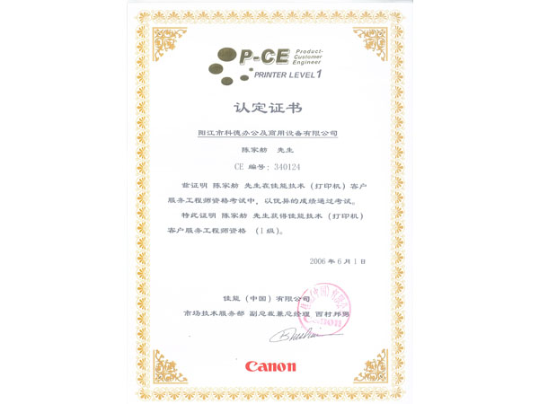 陳家舫 / 佳能技術(shù)認(rèn)證