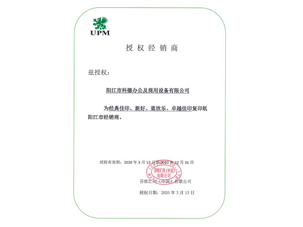 陽江科德 / UPM復(fù)印紙經(jīng)銷授權(quán)